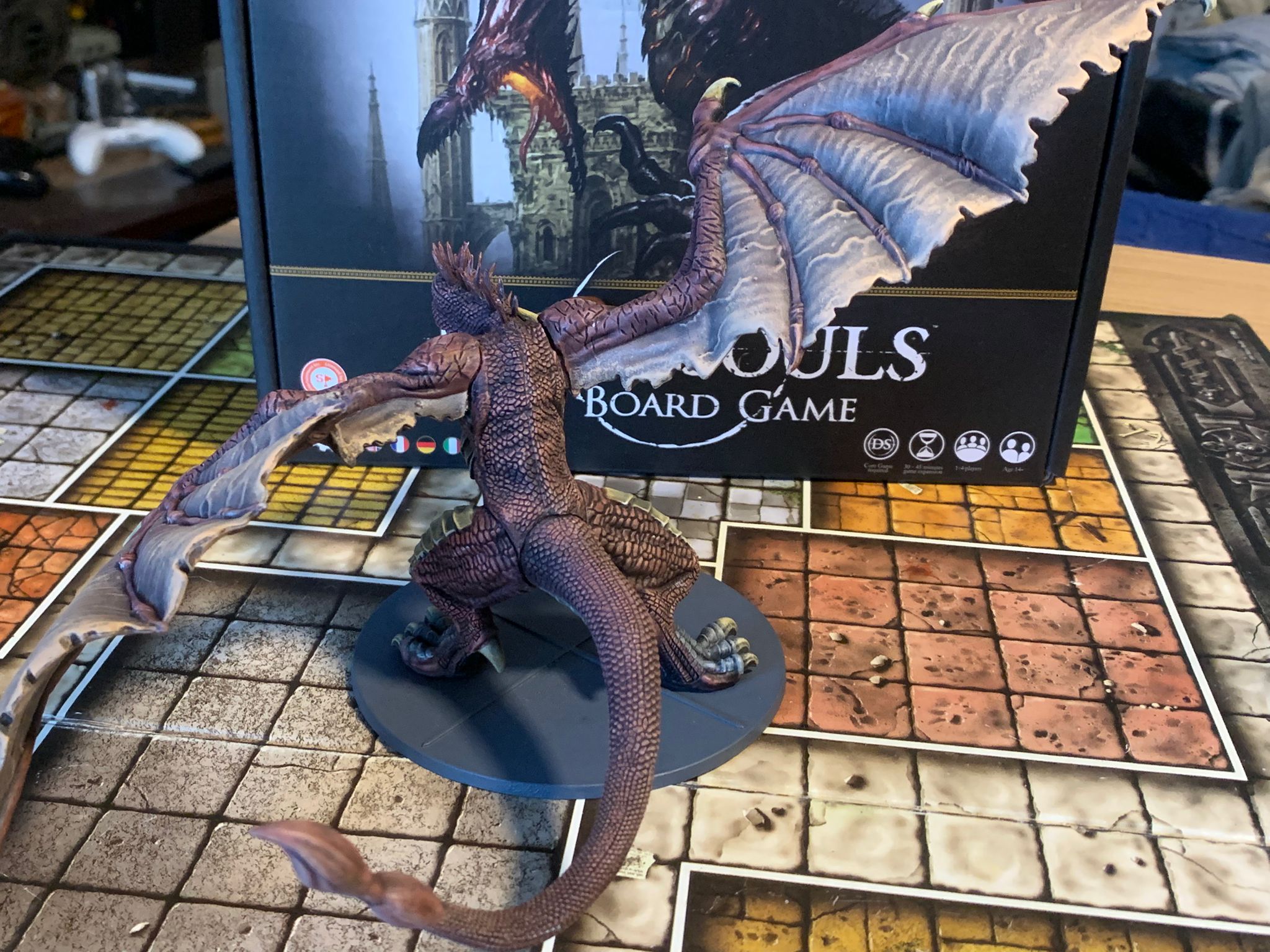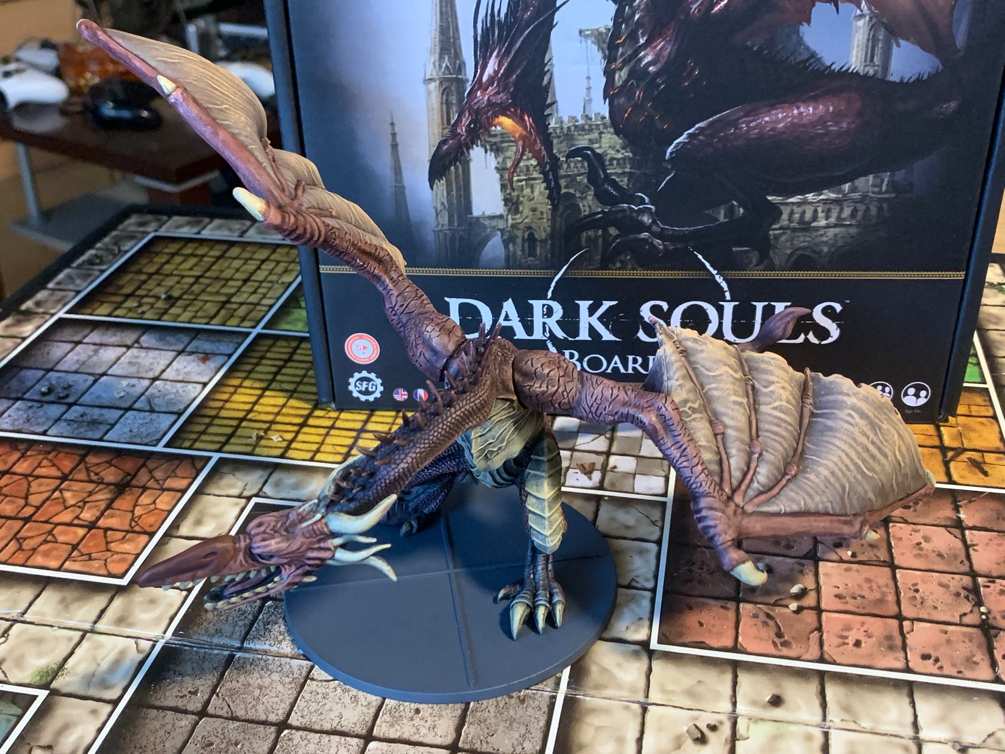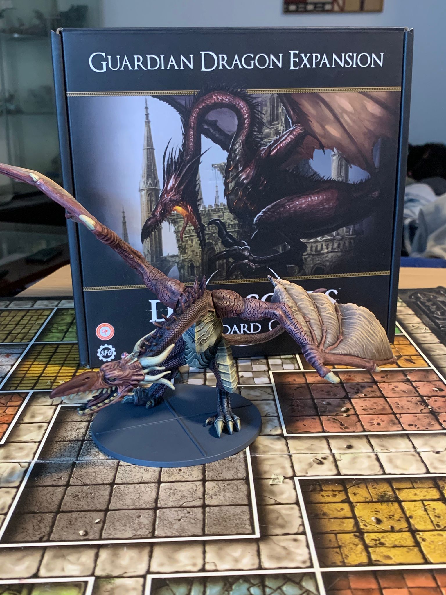 Enhance your Dark Souls: The Board Game experience with the Guardian Dragon Expansion — a towering mega‑boss add‑on that lets your party face the fearsome Guardian Dragon, a red wyvern that guards the passage to the Dragon Aerie and unleashes deadly fire attacks that will test your tactics and teamwork. This limited edition Vault‑Exclusive expansion includes a large Guardian Dragon miniature, a mega boss game board, health dial, boss data card, 11 behaviour cards, Fiery Breath cards, treasure cards, and Level 4 encounter cards to bring this dramatic encounter to life on your table. At BoardGamesMinis, we take every figure in this expansion and hand‑paint it with atmospheric detail and character, making your confrontation with the Guardian Dragon a stunning visual centerpiece for your Dark Souls campaigns.