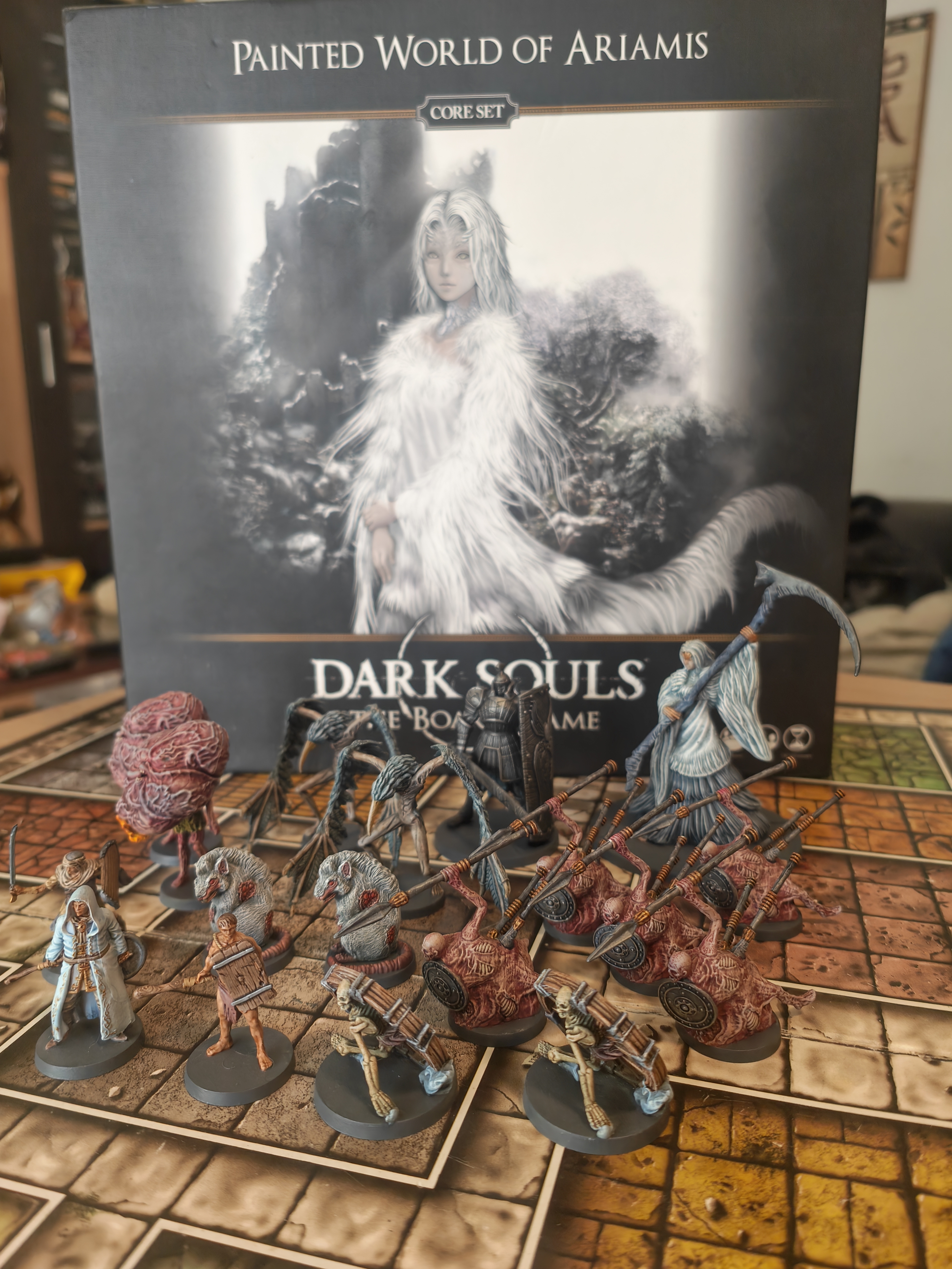 Enhance your collection with the [Dark Souls: The Board Game – Painted World of Ariamis]() — a standalone tabletop adventure that brings one of the most evocative areas from the Dark Souls universe to life. In this set, you’ll explore the mysterious Painted World of Ariamis, face off against iconic foes like Crossbreed Priscilla, and command your own undead champions across thrilling missions. The box includes 18 detailed miniatures (including bosses, player characters, and a variety of enemies), 4 double‑sided game tiles, 3 character boards and token boards, a campaign dashboard, 169 cards, 15 dice, and all the components needed to dive straight into the campaign. At BoardGamesMinis, we take it a step further — every miniature is hand‑painted with care and atmospheric detail, transforming your table into a stunning battlefield worthy of Lordran’s perils.