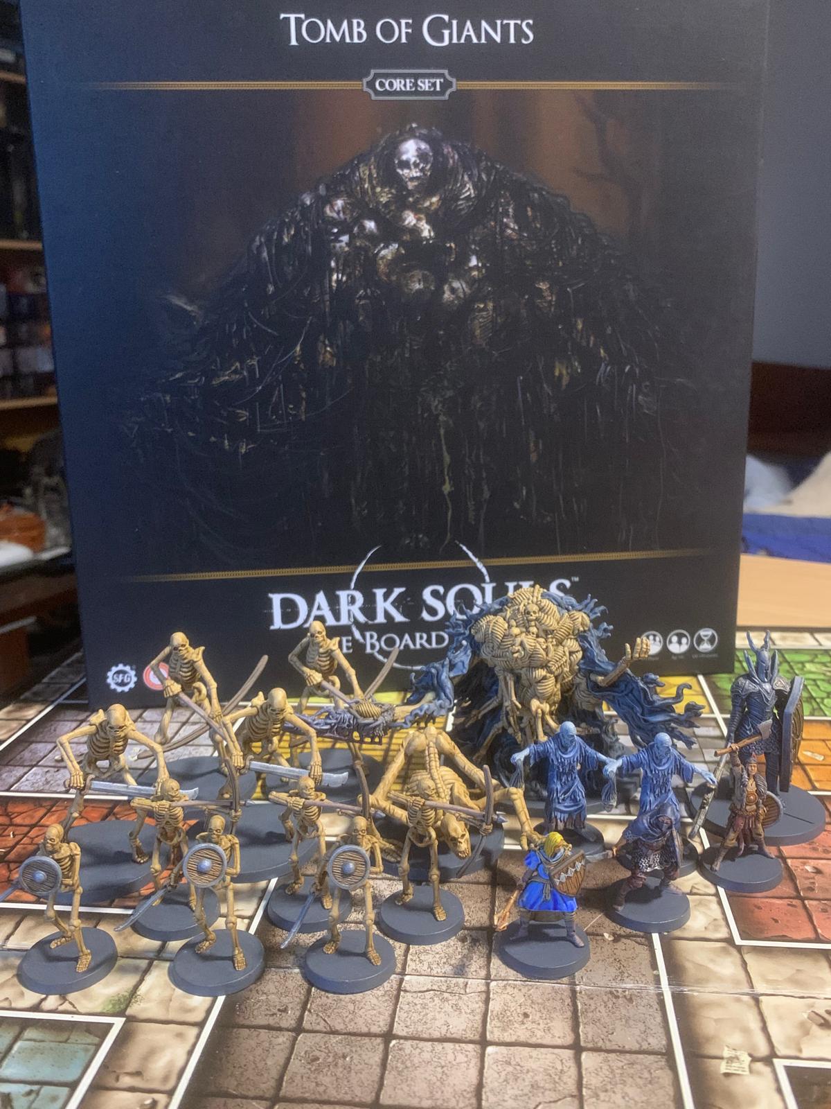 Enhance your Dark Souls: The Board Game collection with Tomb of Giants, a standalone adventure that plunges your party into the haunted depths of the Tomb of Giants to confront the terrifying Gravelord Nito and his skeletal horde. This set includes 18 highly detailed miniatures (including the massive boss, a mini‑boss, enemies and playable characters), 4 double‑sided game tiles, 3 character boards, 3 token boards, a campaign dashboard, 169 cards, 15 dice, 2 health dials, and a full rulebook — everything you need for thrilling cooperative campaigns that evoke the fearsome spirit of Lordran’s darkest reaches. At BoardGamesMinis, we take every miniature from this core set and hand‑paint it with atmospheric detail and character, bringing the eerie crypts and undead terrors of the Tomb of Giants vividly to life on your tabletop.