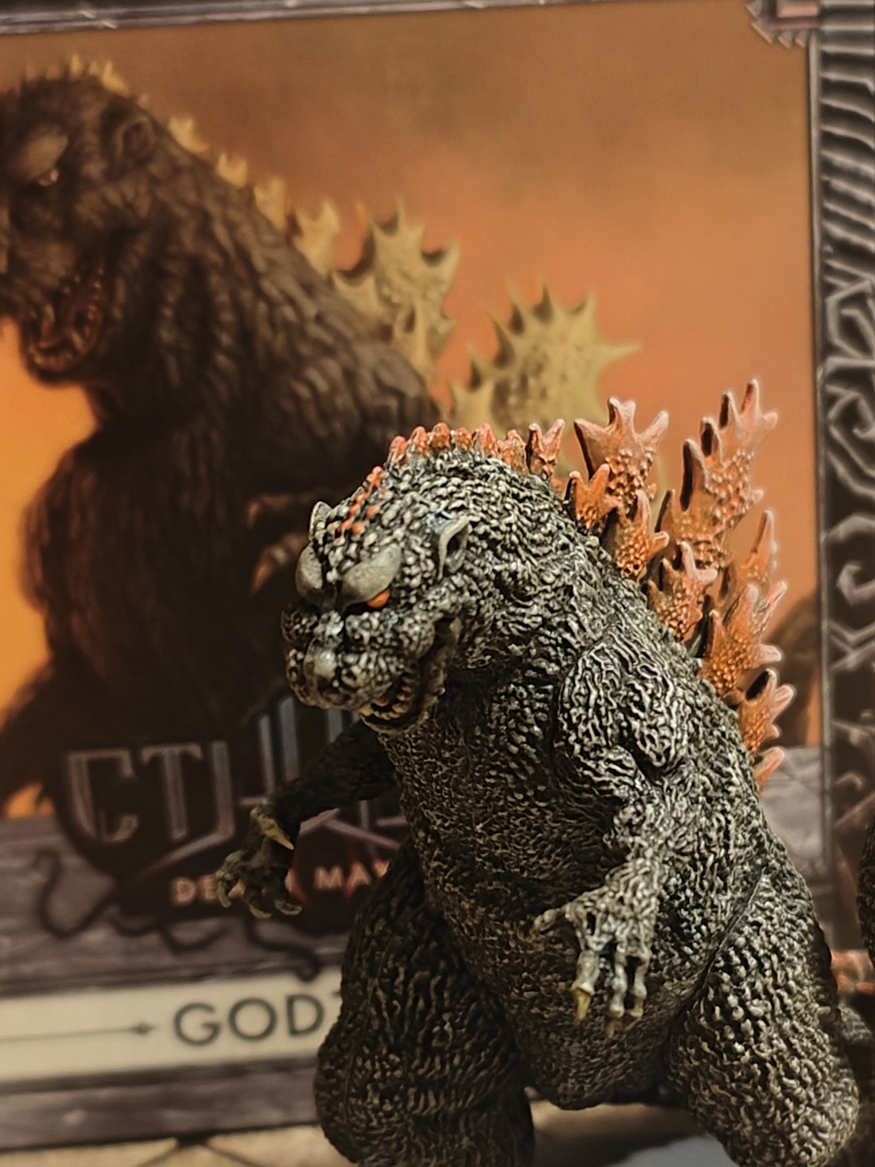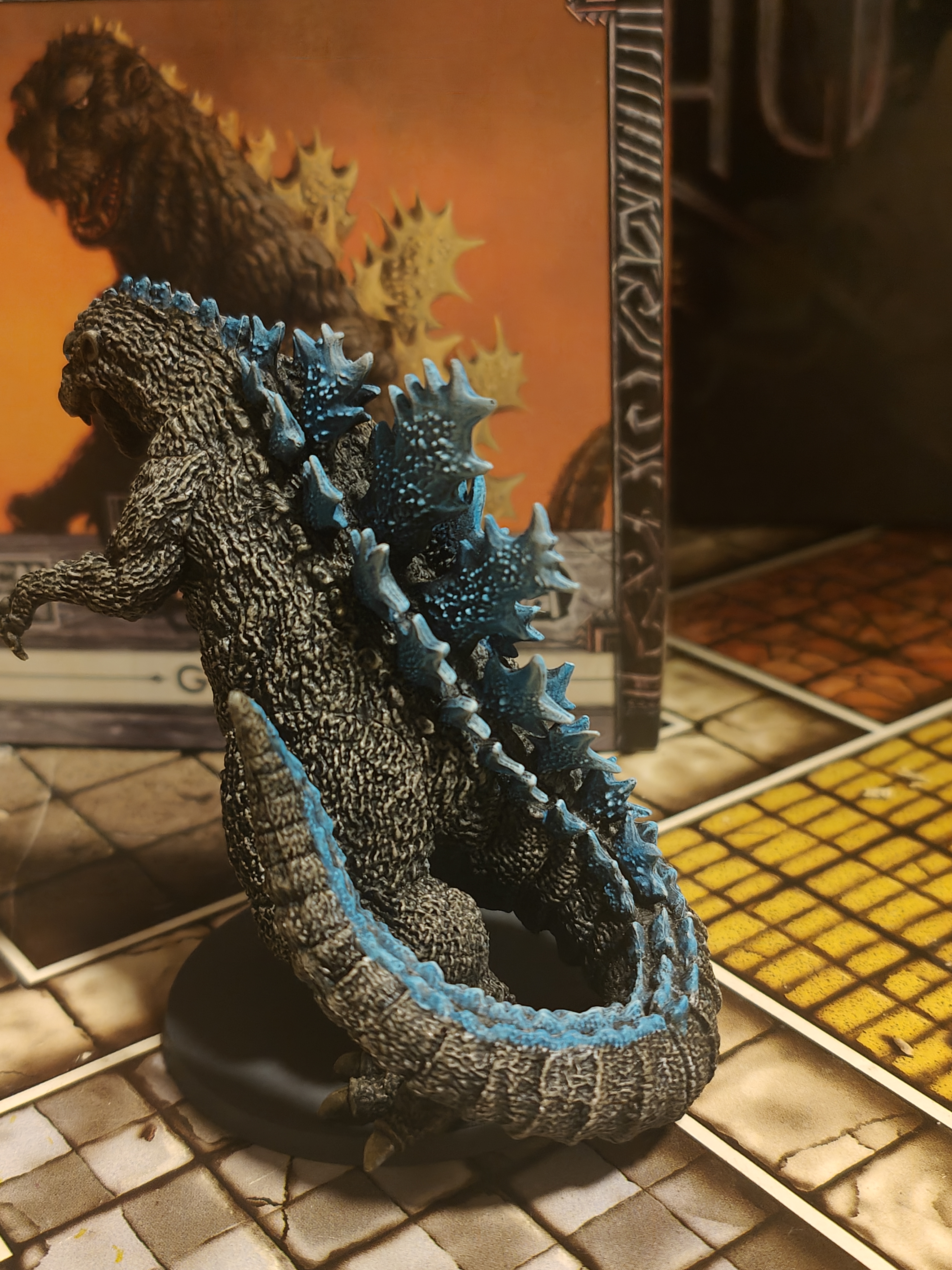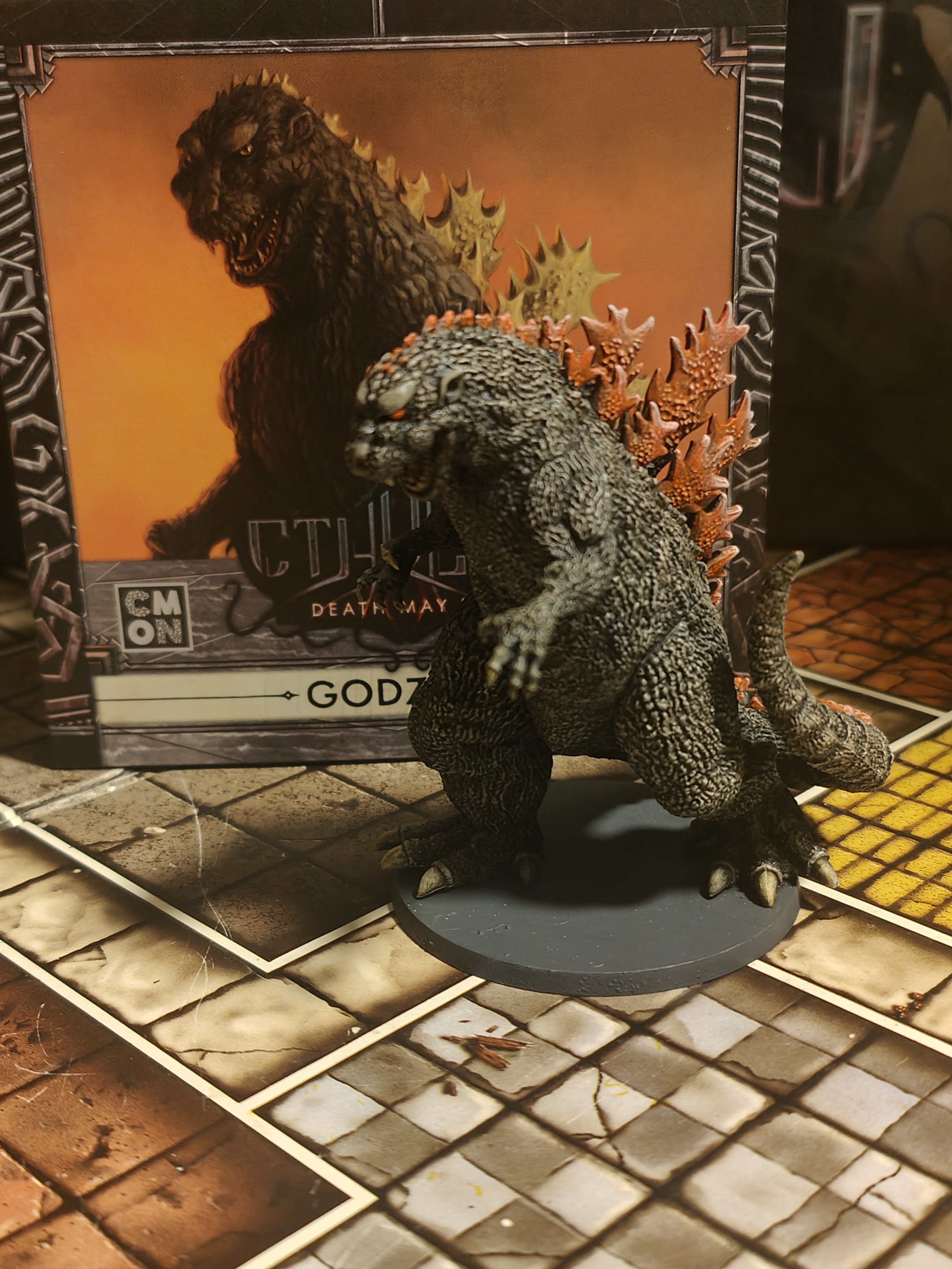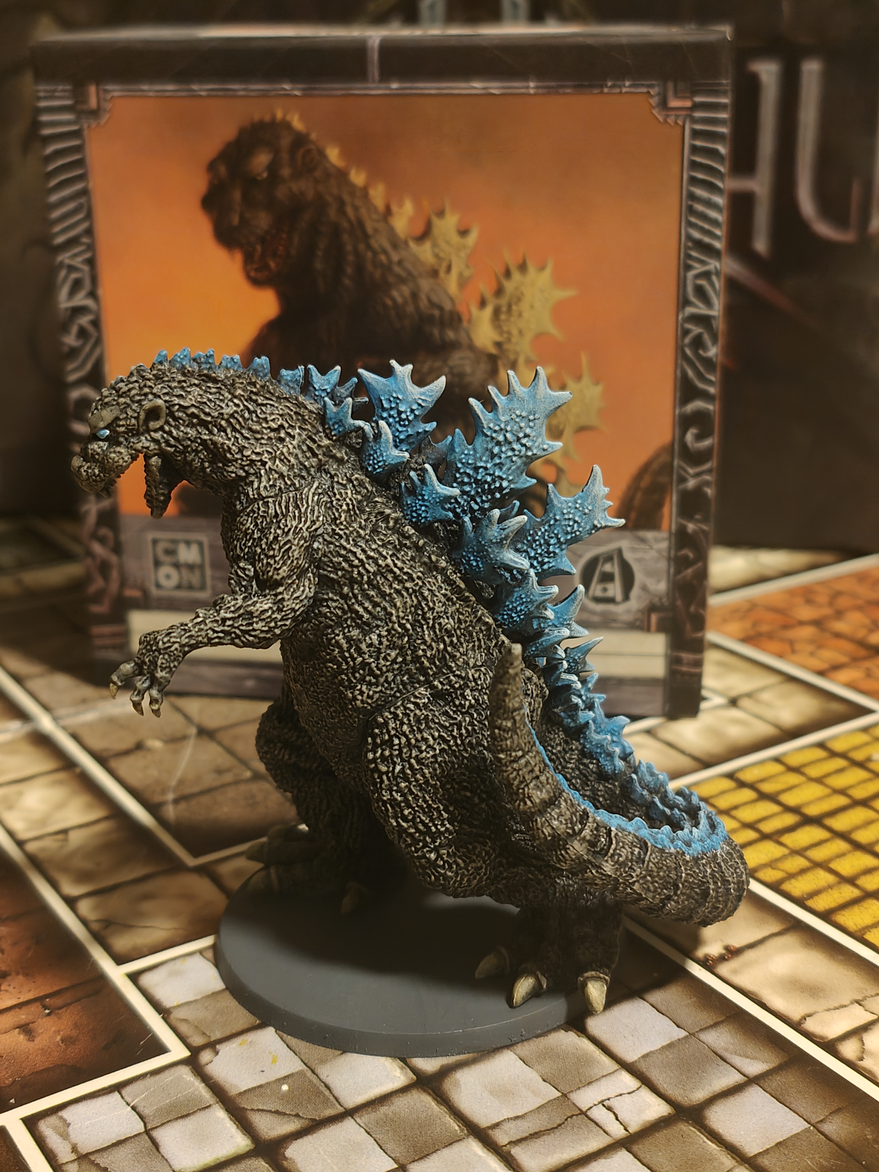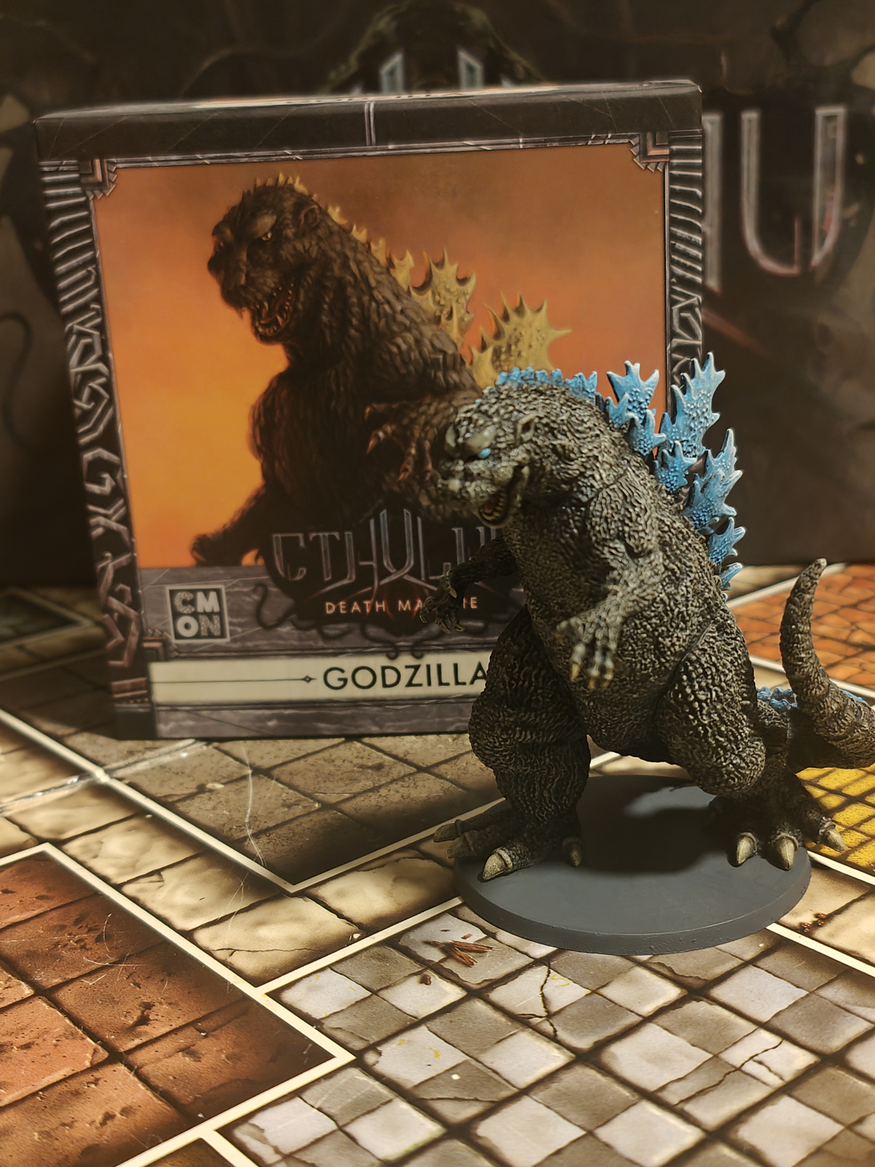 Enhance your Cthulhu: Death May Die collection with the Godzilla expansion, a standalone add‑on that brings the iconic Godzilla figure into your Mythos battles. This version focuses on a single Godzilla miniature, a small set of Godzilla‑themed cards, and token components that let you integrate the monstrous Kaiju into your scenarios as an unpredictable force of nature — stomping, roaring, and influencing the flow of the game in dramatic ways. It can be added to many episodes for fresh chaos and cinematic encounters without needing the full Godzilla Rising mega‑expansion. At BoardGamesMinis, we take every figure from this promo and hand‑paint it with care and atmospheric detail, making your table come alive with this legendary crossover cameo.