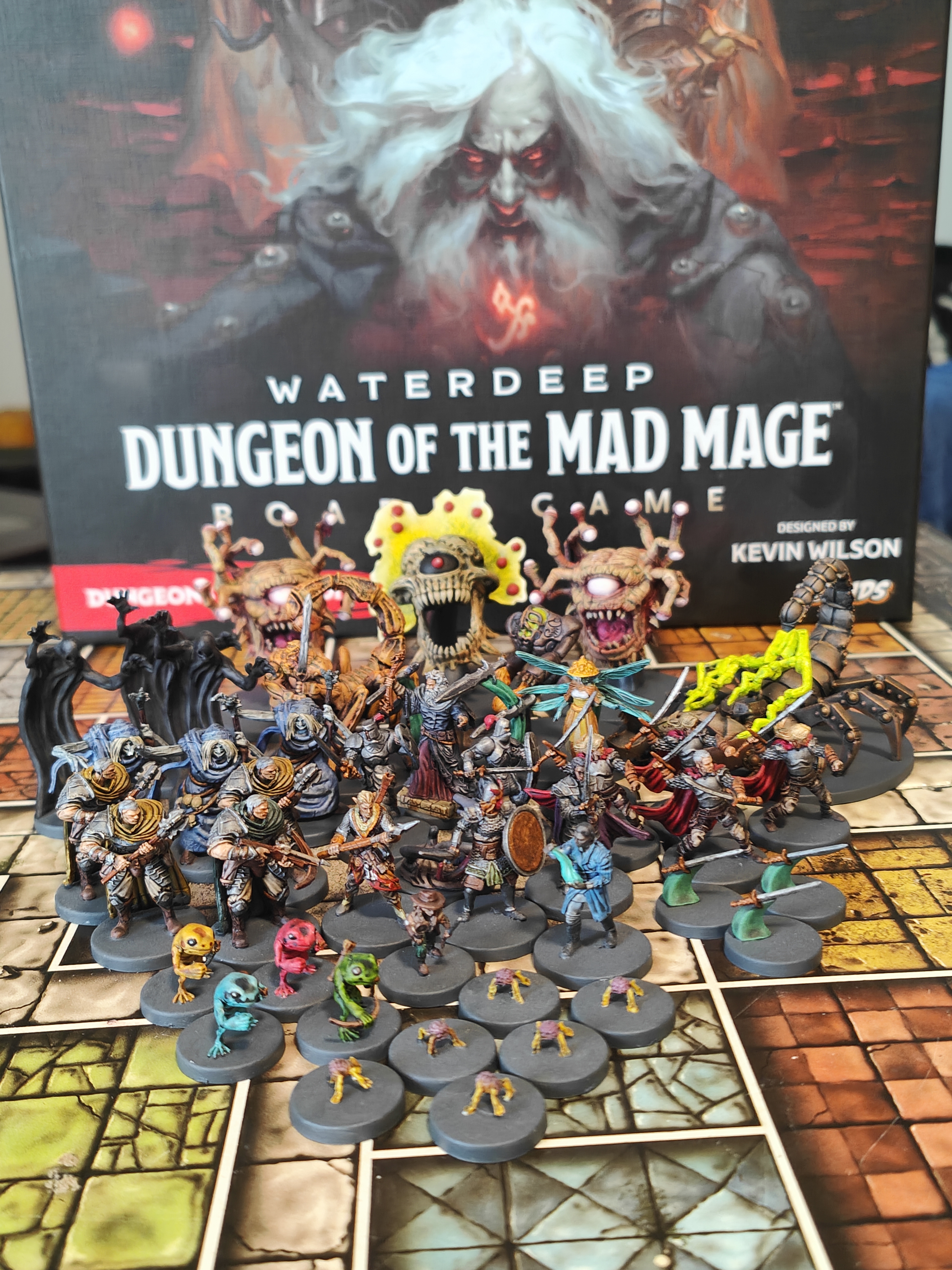 Enhance your Dungeons & Dragons: Waterdeep – Dungeon of the Mad Mage tabletop experience with a premium painted edition from BoardGamesMinis. In this cooperative adventure game you and up to 5 players delve into the sprawling depths of Undermountain, the labyrinthine dungeon beneath Waterdeep ruled by the mad wizard Halaster Blackcloak, facing traps, monstrous enemies, and challenging quests as you seek treasure and glory. The standard board game box includes 42 single‑colour miniatures, 40 interlocking dungeon tiles, 5 hero tiles, 4 villain tiles, 225 cards, over 300 tokens, an adventure book, rulebook, and a 20‑sided die — all designed for cooperative play from 1 to 5 players. It also introduces new Environment and Bane/Boon cards and expands on mechanics seen in Tomb of Annihilation. At BoardGamesMinis, we take every figure from this set and hand‑paint it with atmospheric detail and character, bringing the perilous depths of Undermountain vividly to life on your tabletop.Price: €500