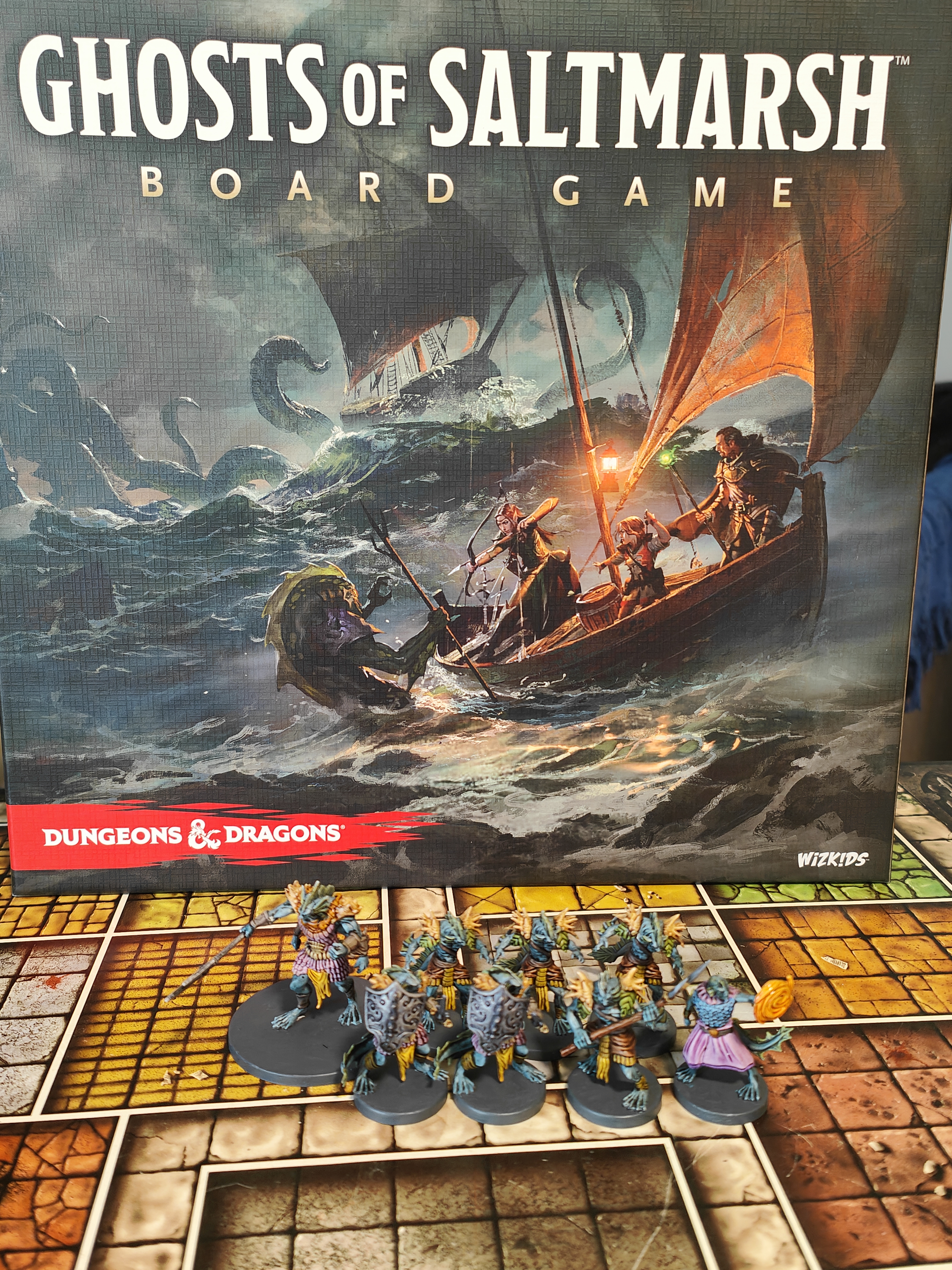 Enhance your Dungeons & Dragons: Ghosts of Saltmarsh board game experience with a hand‑painted edition from BoardGamesMinis. This cooperative Adventure System title blends classic D&D dungeon crawling with new scenarios and seaside defence missions set around the titular town of Saltmarsh. The box includes 29 illustrated interlocking dungeon tiles, 8 detailed plastic sahuagin miniatures including two powerful villains, a rulebook and adventure book with linked scenarios, 148 cards covering encounters, treasures, and powers, plus 154 markers and tokens to enrich your campaigns. At BoardGamesMinis, we take every miniature in this set and hand‑paint it with atmospheric detail and character, bringing the treacherous waters and terrifying foes of Saltmarsh vividly to life on your tabletop.