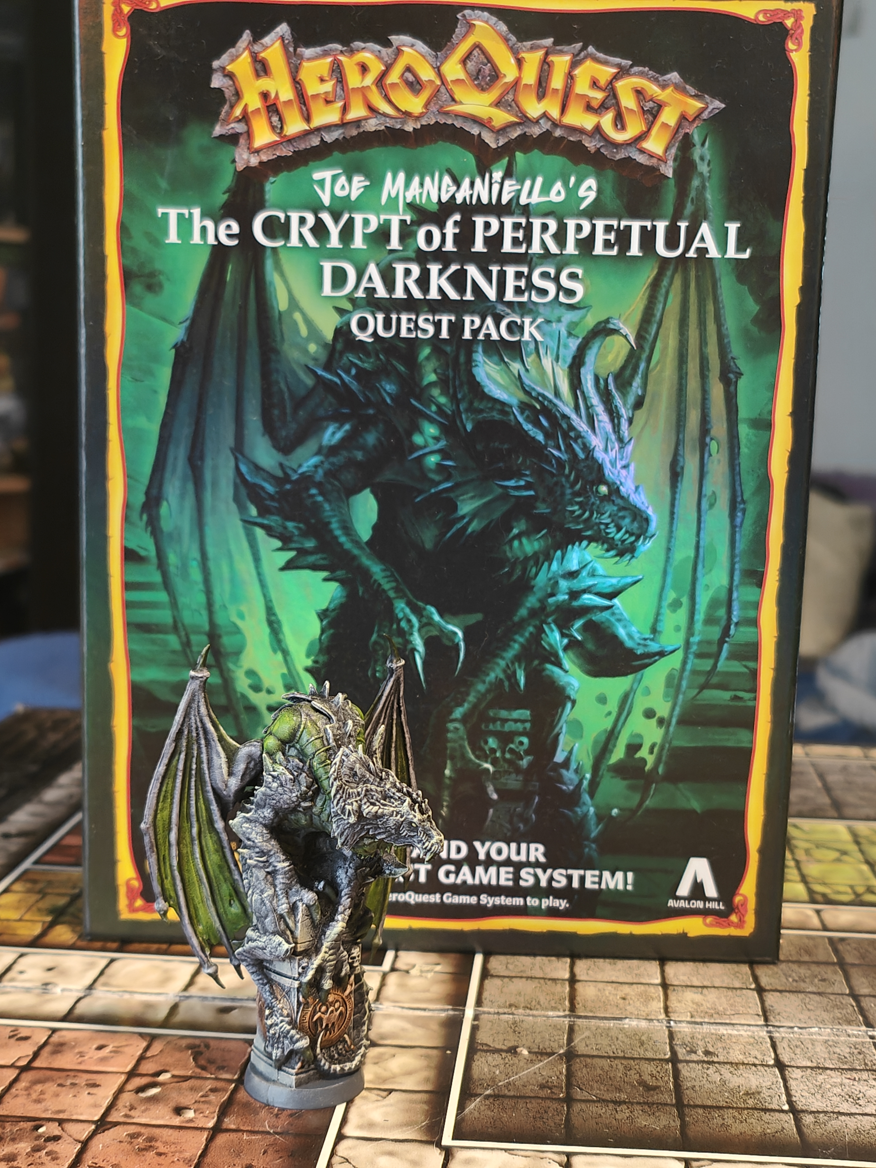 Elevate your HeroQuest sessions with The Crypt of Perpetual Darkness, a thrilling expansion designed by Joe Manganiello that plunges your group into 10 new epic quests deep beneath the world in search of a lost crypt and powerful artifacts. The box includes a metallic black dragon miniature, 8 sleek black dice, a pad of character sheets, 20 premium foil‑embellished game cards, and 2 cardboard tile sheets that bring fresh challenges, encounters, and narrative depth to your adventures. At BoardGamesMinis, we take it further by hand‑painting every miniature with care and atmospheric detail, turning this expansion into a striking visual highlight on your tabletop.