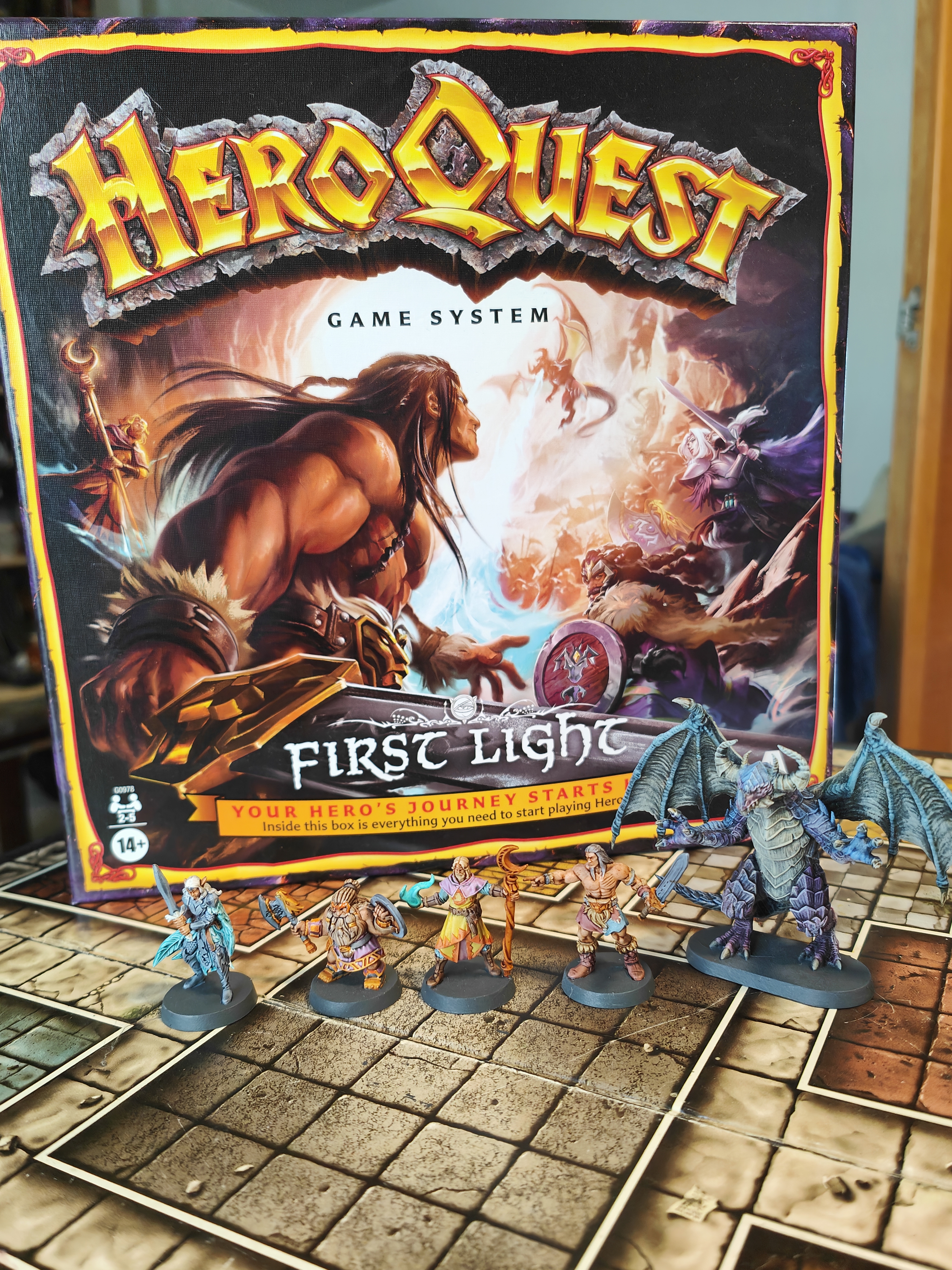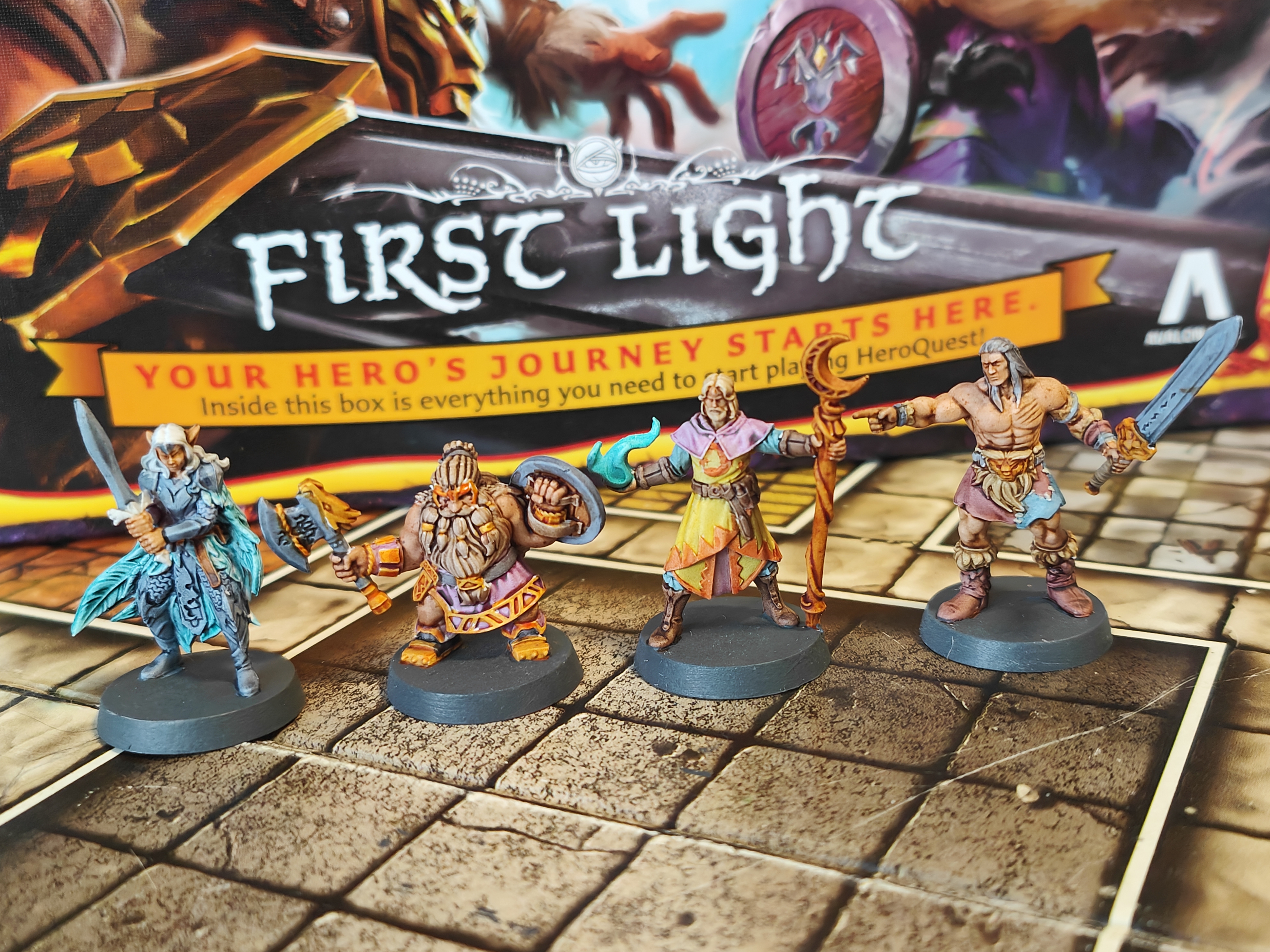 Enhance your HeroQuest collection with HeroQuest: First Light, a standalone dungeon‑crawling adventure that invites you to lead four mythical heroes through 10 fresh quests full of danger, treasure, and strategy. This set includes a double‑sided game board, a miniature dragon, 4 hero miniatures, and over 100 components — from monster and furniture pieces to illustrated cards and polished tokens — all designed to immerse you in evolving dungeon environments. The system is compatible with all other HeroQuest expansions and lets you use a companion app as the game master for solo or cooperative play. At BoardGamesMinis, we take it further by hand‑painting every miniature with atmospheric detail and character, elevating this adventure to a stunning visual centerpiece on your tabletop.