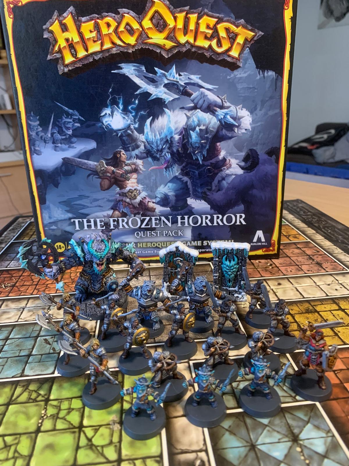 Enhance your HeroQuest campaigns with Frozen Horror, a chilling quest pack that takes your heroes into a wintry domain haunted by frost‑touched foes and ancient terrors. This expansion includes 16 detailed monster miniatures (such as Snow Ogres, Ice Wraiths, and White Wolves), new full‑colour adventure tiles, doors and dungeon accessories, game cards, and a quest book filled with scenarios that push your party to survive freezing dangers and uncover hidden secrets in the frost. (Product details from official HeroQuest expansion listings.)At BoardGamesMinis, we hand‑paint every miniature with atmospheric detail and character, bringing the frozen landscapes and terrifying creatures to life on your tabletop.