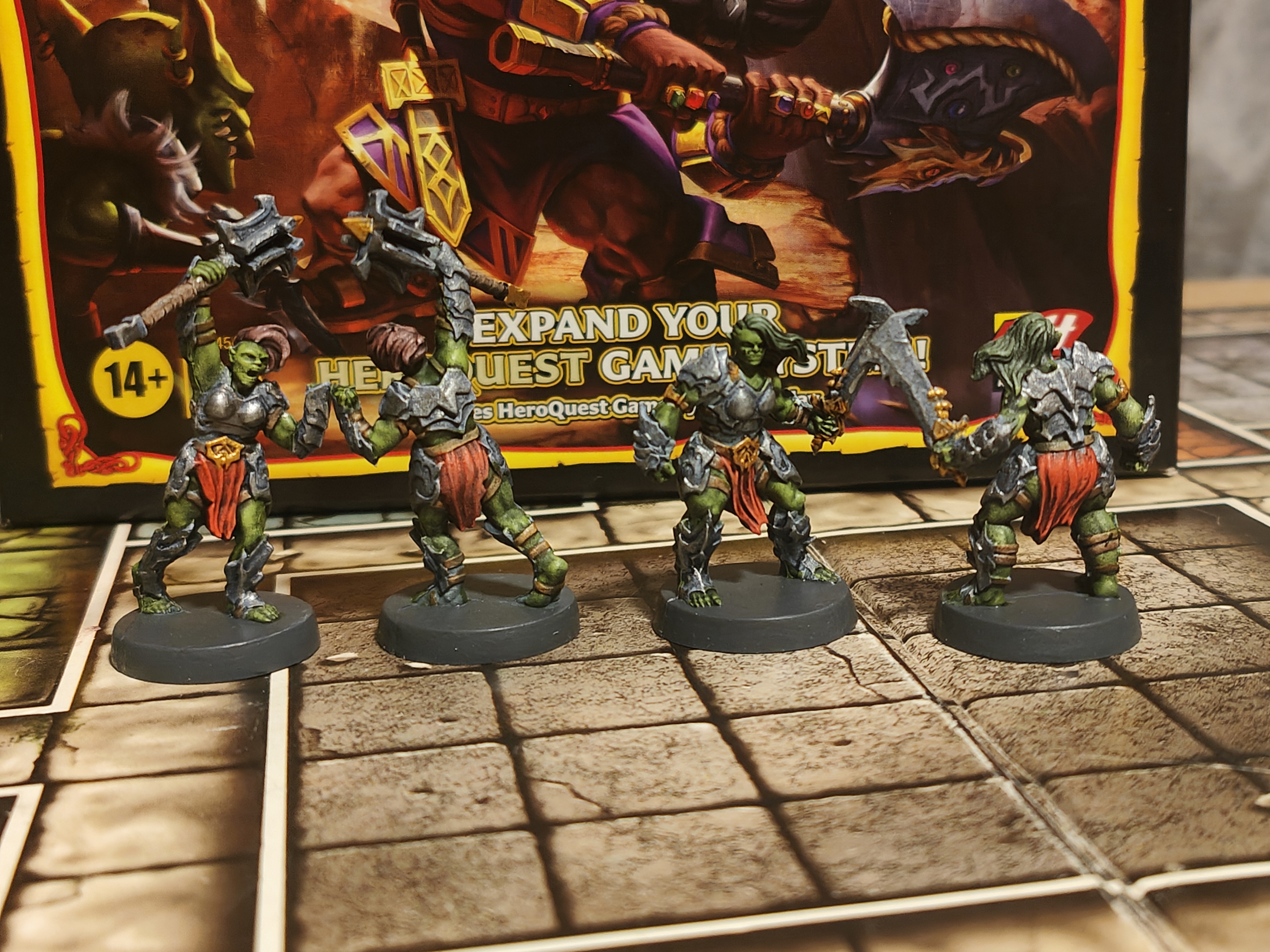 Enhance your HeroQuest adventures with HeroQuest: Kellar’s Keep, the first classic expansion that sends your heroes deep into the forbidding underground fortress of Kellar to rescue the trapped king and face new threats. This quest pack includes 10 exciting missions, a quest book, full‑colour tiles and tokens, two dungeon doors, 14 game cards, and 17 detailed miniatures — including 8 orcs, 6 goblins, and 3 abominations — that expand both the challenge and variety of your quests. At BoardGamesMinis, we take every miniature in this expansion and hand‑paint it with atmospheric detail and character, bringing the orcs, goblins, and abominations to life on your tabletop and making your game nights truly memorable.