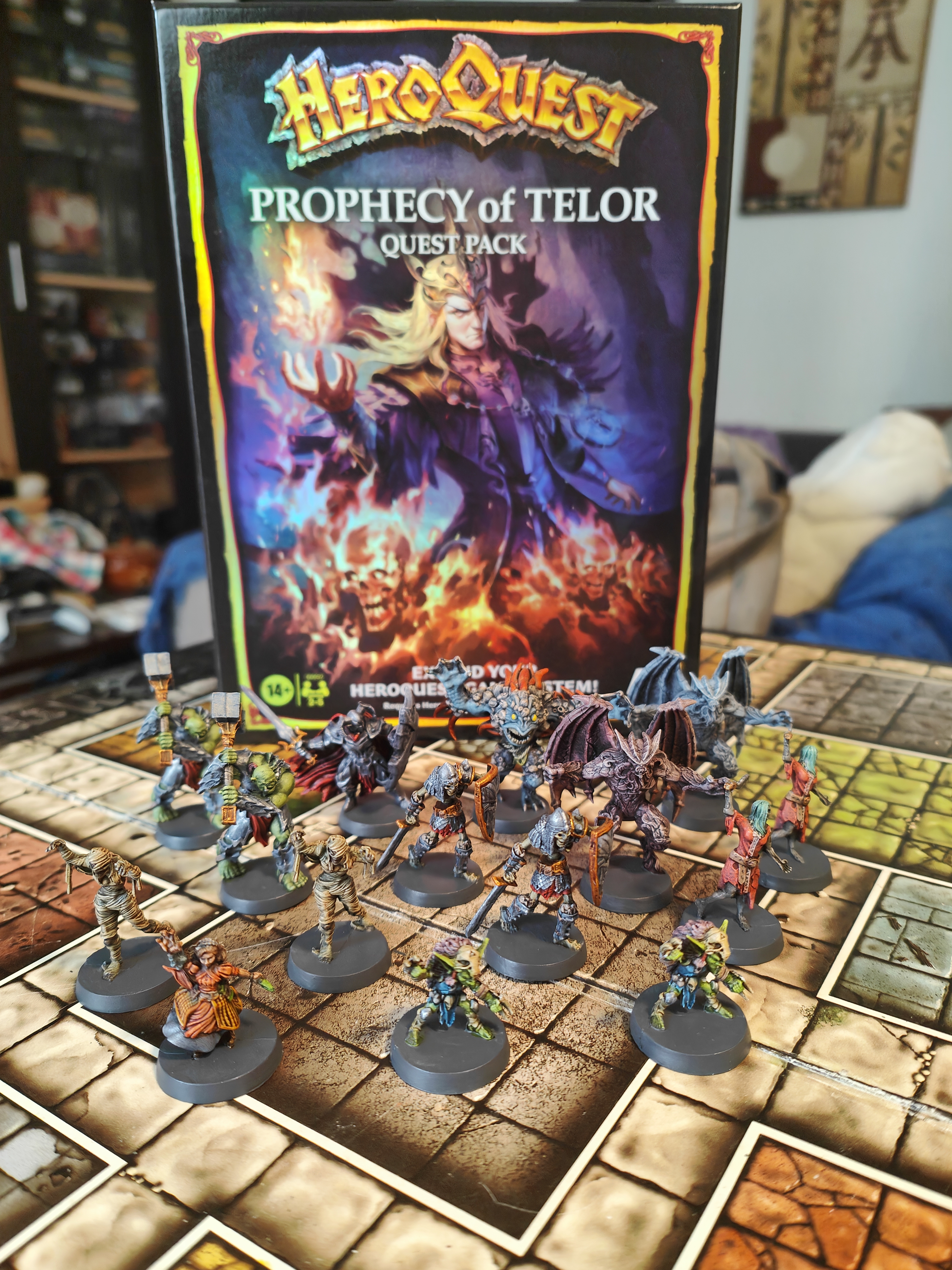 Enhance your HeroQuest adventures with Prophecy of Telor, a quest pack that takes your heroes on a perilous journey through 10 new quests tied together by an unfolding prophecy about the dark sorcerer Telor and his schemes. This expansion includes 16 detailed monster miniatures (such as goblins, orcs, and spellcasters), full‑colour tiles, doors and dungeon accessories, cards, and a quest book that adds narrative depth and fresh challenges to your campaigns. (Product details from the official HeroQuest expansion listings.)At BoardGamesMinis, we hand‑paint every miniature with atmospheric detail and character, bringing the world of Telor vividly to life on your tabletop.