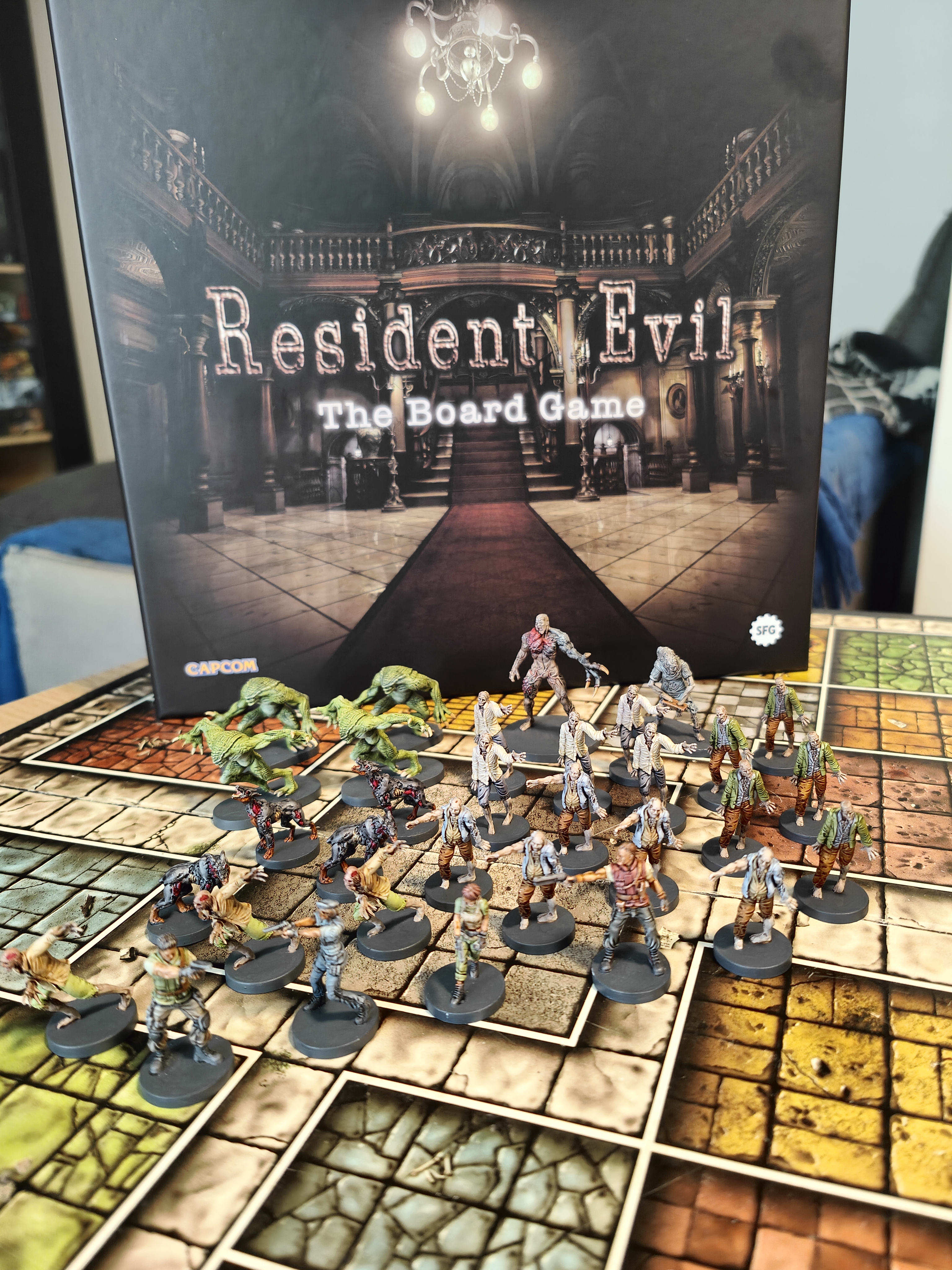 Enhance your Resident Evil: The Board Game experience with a **hand‑painted edition by **BoardGamesMinis. This cooperative survival horror game, inspired by the remake of the original Resident Evil video game, plunges 1–4 players into the sinister Spencer Mansion as iconic characters like Jill Valentine, Chris Redfield, Rebecca Chambers, and Barry Burton fight to survive hordes of enemies and solve puzzles in a branching campaign. The base box includes 32 plastic miniatures, 21 double‑sided modular game tiles, over 430 cards, tracker dials, dice, tokens, a rulebook and scenario book — providing a deep and thematic horror experience on the tabletop. At BoardGamesMinis, we take every figure from this set and hand‑paint it with atmospheric detail and character, elevating your game’s visual impact and immersion.