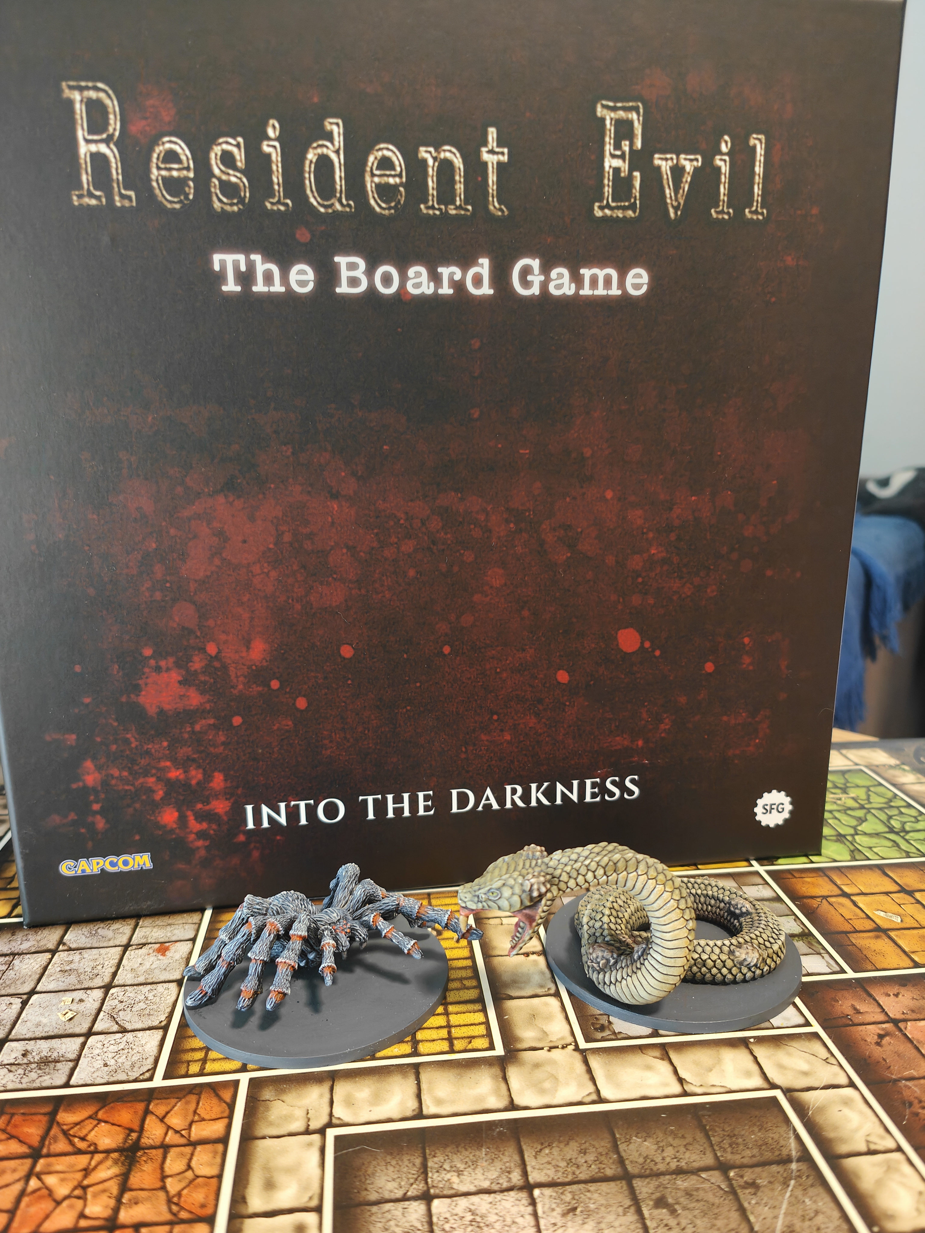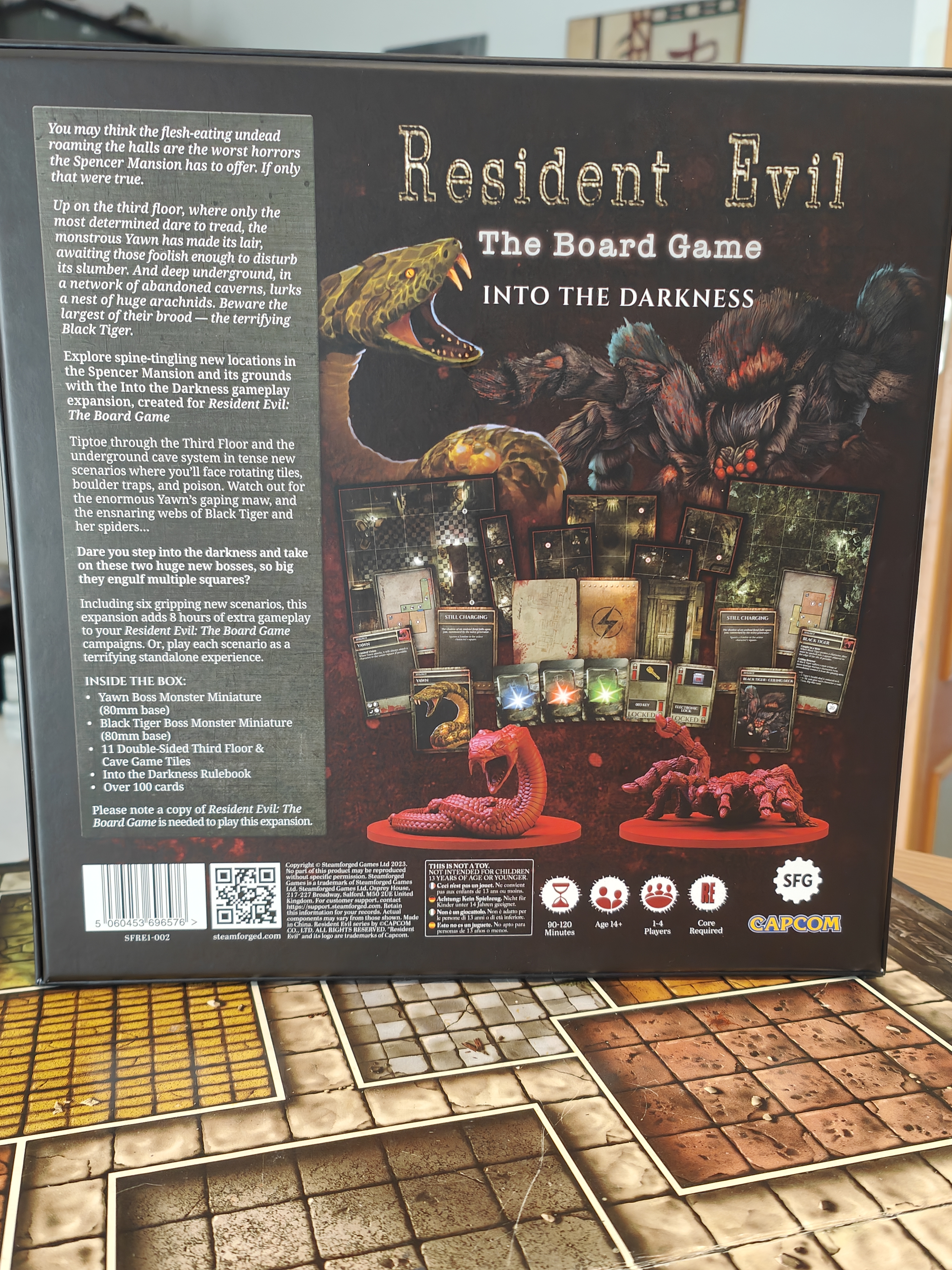 Enhance your Resident Evil: The Board Game experience with the Into the Darkness expansion — a chilling add‑on that pushes you into the third floor of the Spencer Mansion and the eerie underground caves, where new horrors await. In this expansion you’ll face two massive boss monsters (Yawn and the Black Tiger), explore 11 double‑sided new game tiles, and dive into six intense new scenarios that add about 8 hours of extra gameplay, along with over 100 new cards and a dedicated rulebook. At BoardGamesMinis we hand‑paint every miniature with atmospheric detail, transforming these terrifying encounters into a visually stunning centerpiece for your tabletop adventures.